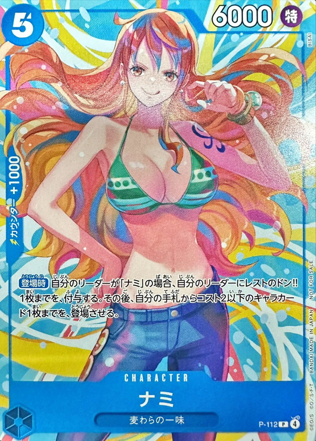 【登場時】自分のリーダーが「ナミ」の場合、自分のリーダーにレストのドン!!1枚までを、付与する。その後、自分の手札からコスト2以下のキャラカード1枚までを、登場させる。